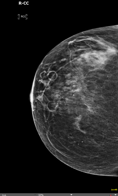Info Images Findings Impression Reco/Acuity Case Images View Images / Launch Visage Case Notes History Screening mammogram; the 43 yo patient is asymptomatic. Exam Bilateral CC and MLO (2D) + Bilateral CC and MLO Tomosynthesis (3D). Prior Study None or previous exam not available Dicom View Reference Material