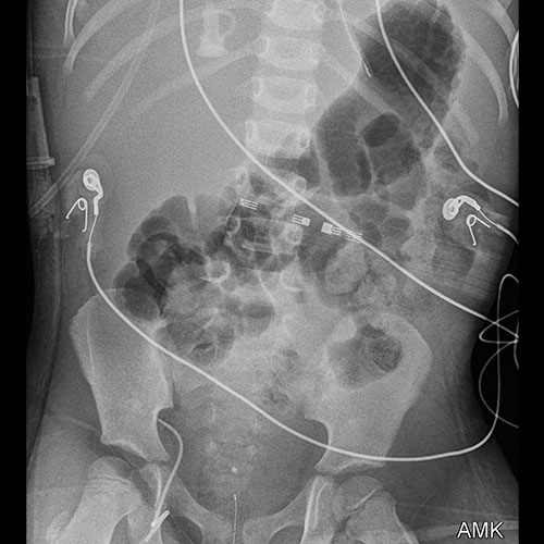 ​Both the small and large bowel are filled with air and/or fluid and may or may not be distended.