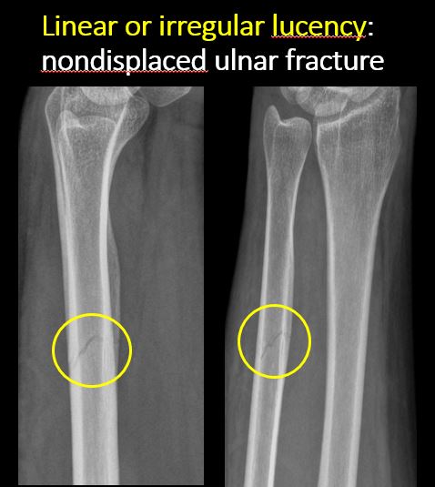 There is linear or irregular lucency, or increased density, cortical depression, flattening, or collapse with or without cortical disruption or thickening, which may be from a compression or impaction fracture, stress or insufficiency fracture, osteonecrosis, or other fracture. |