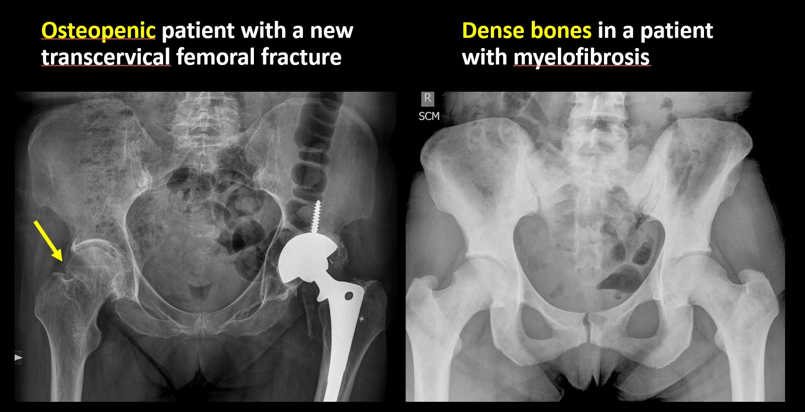 There is linear or irregular lucency, or increased density, cortical depression, flattening, or collapse with or without cortical disruption or thickening, which may be from a compression or impaction fracture, stress or insufficiency fracture, osteonecrosis, or other fracture. |