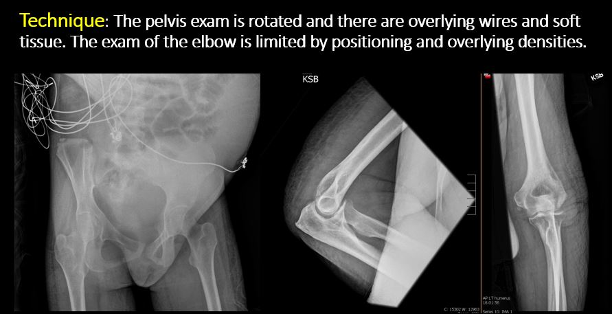 The exam is limited by overlying structures or soft tissues, body habitus, patient positioning, support devices, or motion. |