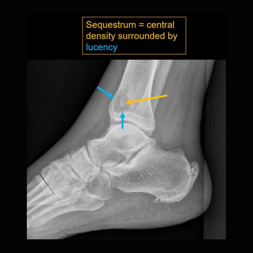 There is periosteal reaction or osseous destruction suggesting osteomyelitis. |