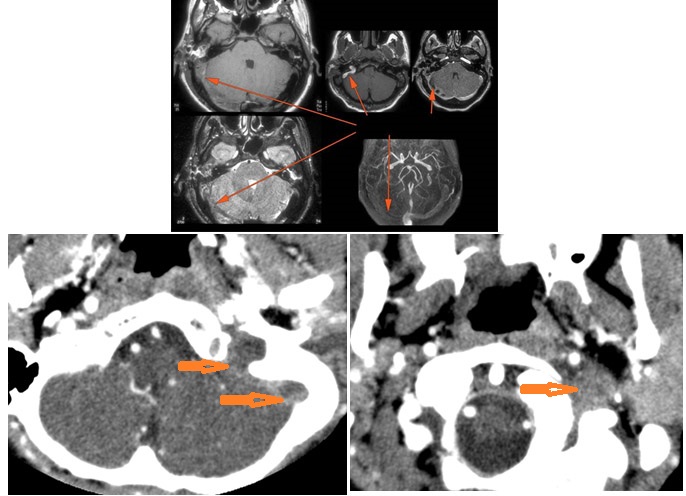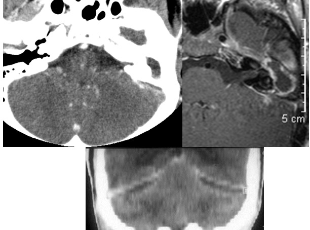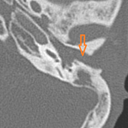 MRI: Anatomically focused axial and coronal images through the temporal bone region and posterior fossa including T1, T2 and diffusion weighted acquisitions done with and without gadolinium contrast enhancement and, when indicated, MRV.