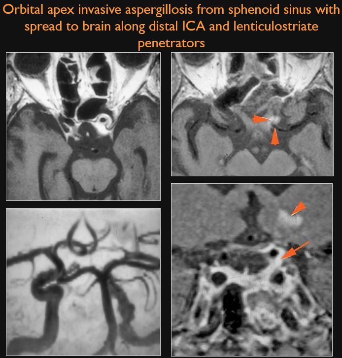 The orbital apex and superior orbital fissure are infiltrated, edematous or otherwise abnormal.
