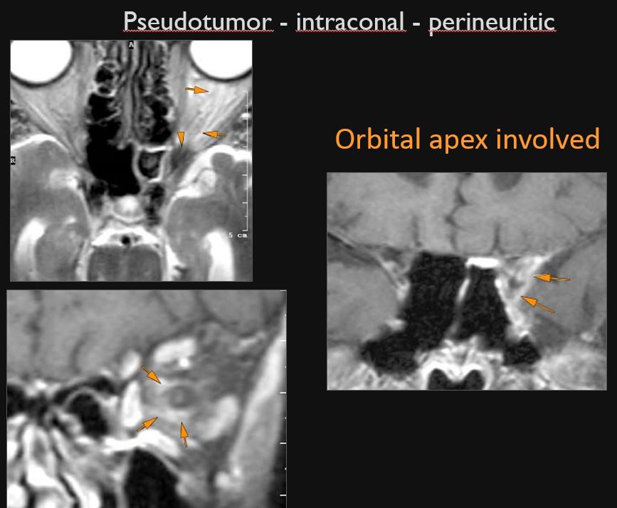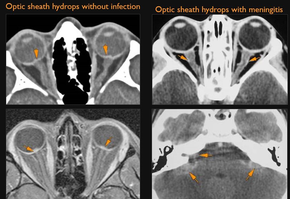 T1 and T2 weighted images were done in the axial coronal plane with high-resolution techniques focused on the orbits and anterior and visual pathways. These include fat-suppressed and images following the intravenous administration of a paramagnetic contrast agent. MRV performed as well.