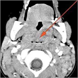 There is suppurative retropharyngeal lymphadenopathy. |