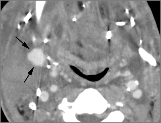 The submandibular glands showabnormal enhancement. |