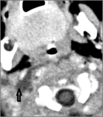 There is excessive enhancement or thickening of the mucosa within in the hypopharynx, larynx or trachea. |