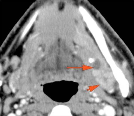 The submandibular lymph nodes are abnormal by imaging criteria. |