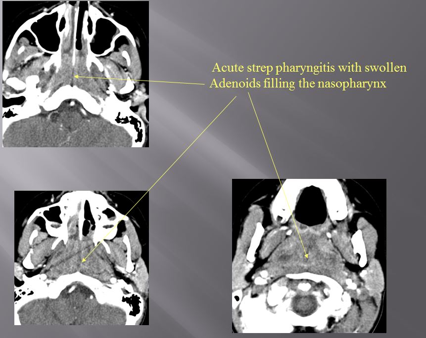 Contrast-enhanced CT of the maxillofacial region and neck and related anatomy with images obtained in the balanced or venous vascular phase to ensure optimal visualization of both arterial and venous structures as well as possible reactive changes around infected collections. 0.5-3.0 mm thick sections were obtained in the axial plane and reformatted 3D and/or in the coronal and sagittal planes and viewed inter actively in 3 dimensions at the computer work station.