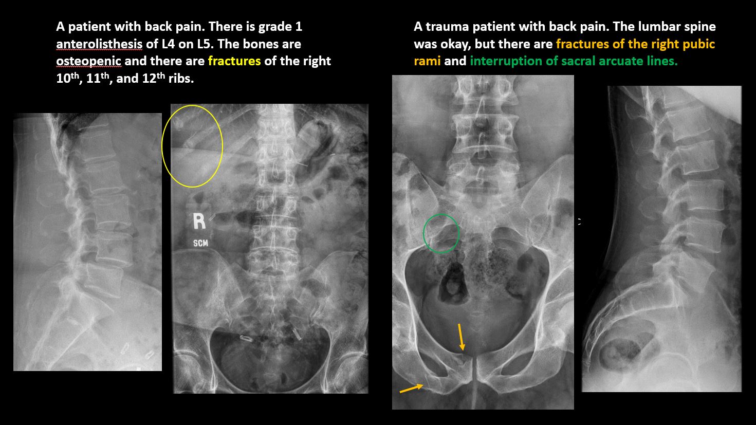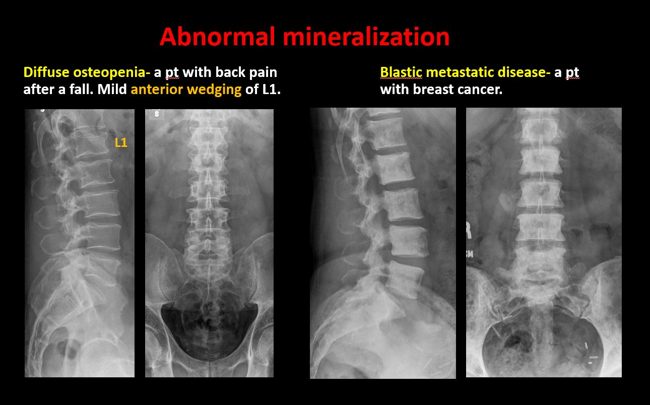 There is focal or diffuse abnormal mineralization of the lumbosacral spine. |