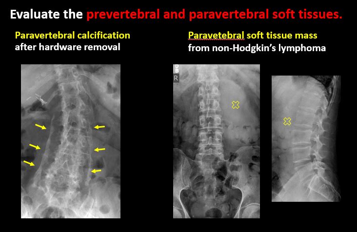 The prevertebral or paravertebral soft tissues are abnormal. |