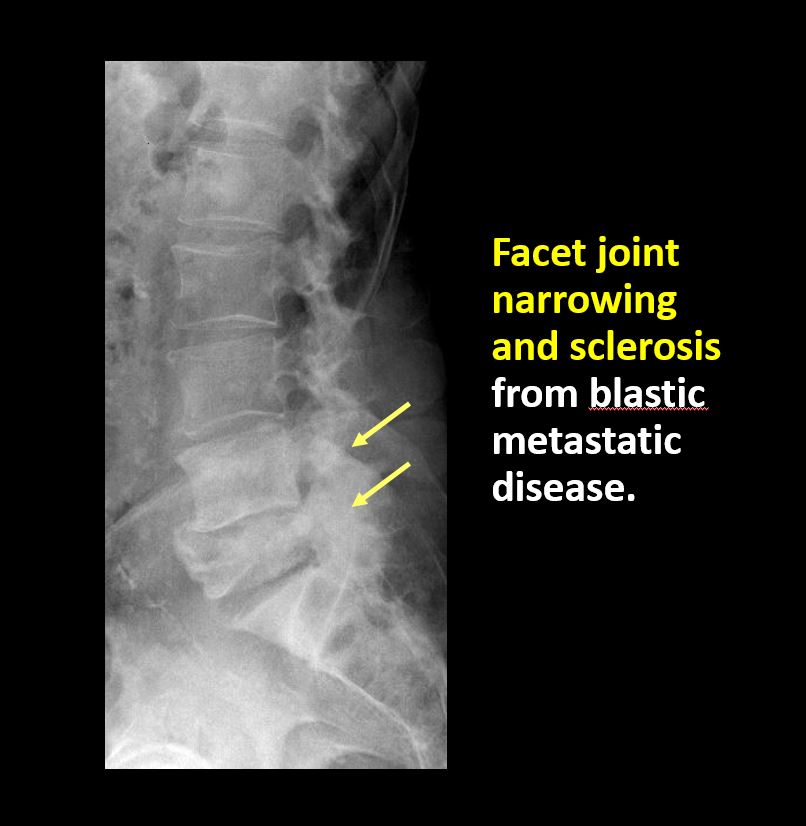 There is facet joint narrowing or sclerosis other than from degenerative change. |
