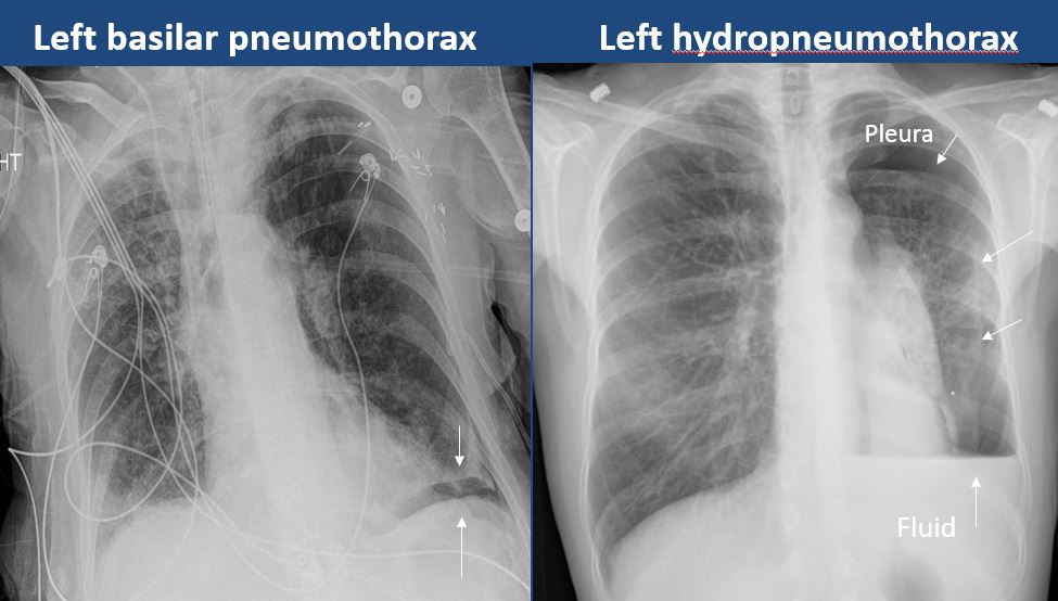 There is a pneumothorax, hydro/pneumothorax, or hemo/pneumothorax. |