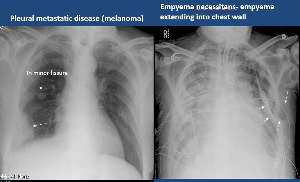 There is focal or diffuse abnormality of the pleura or chest wall. |