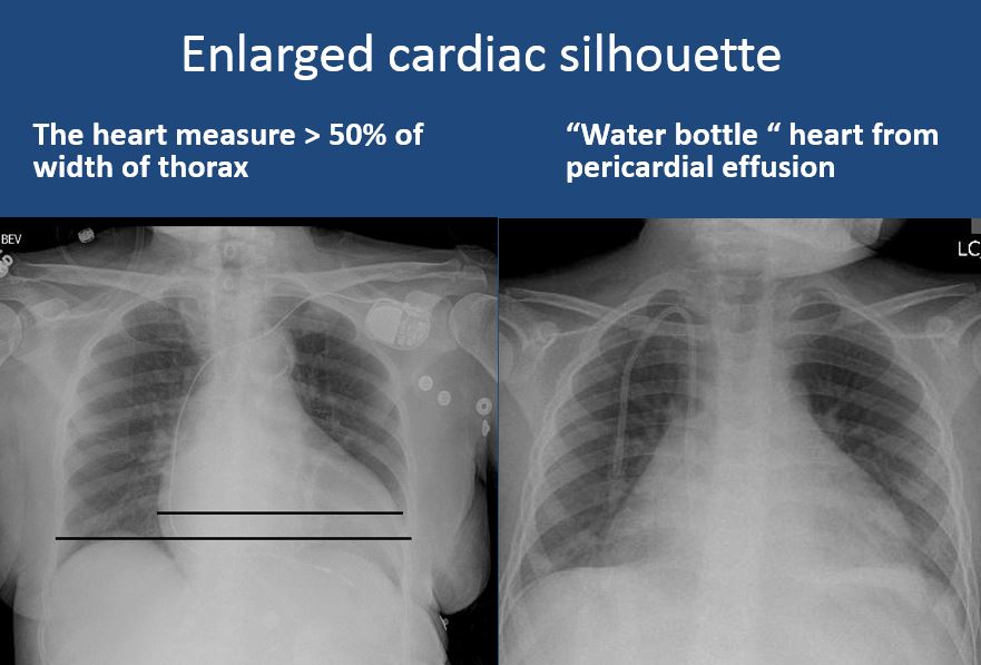 There is enlargement of the cardiac silhouette. |