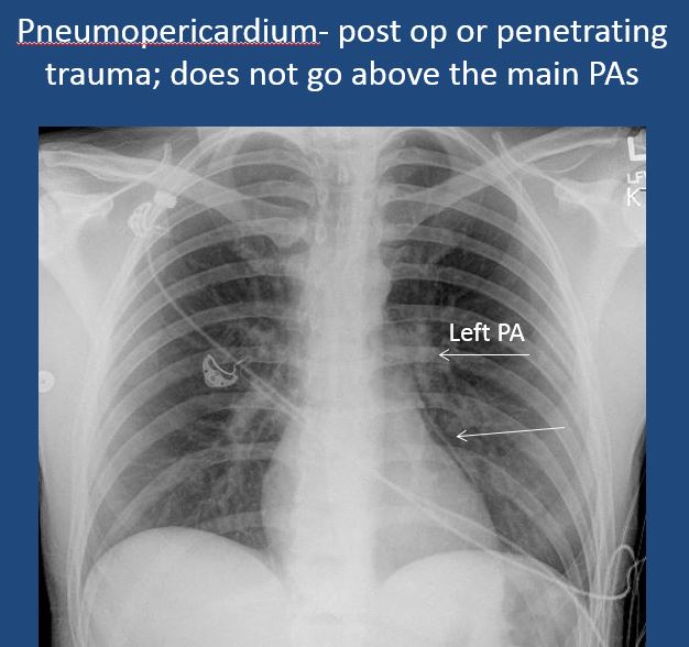 There is pneumopericardium. |