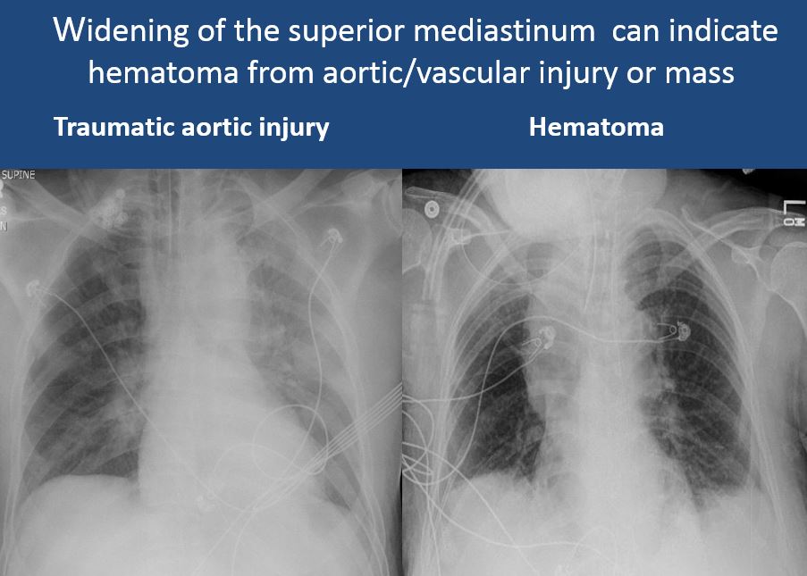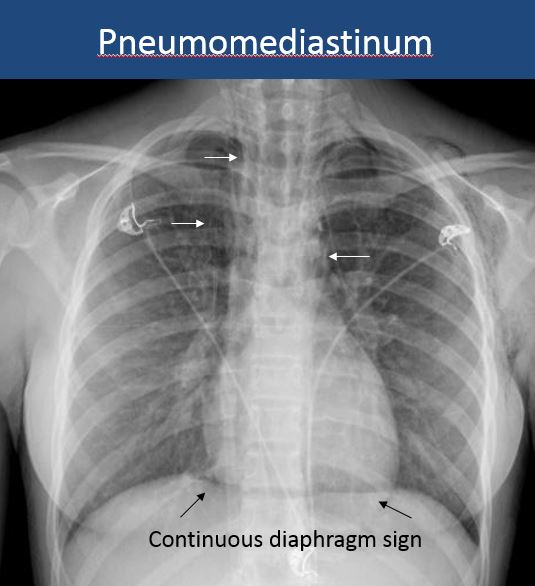 There is air in the soft tissues of the mediastinum. |