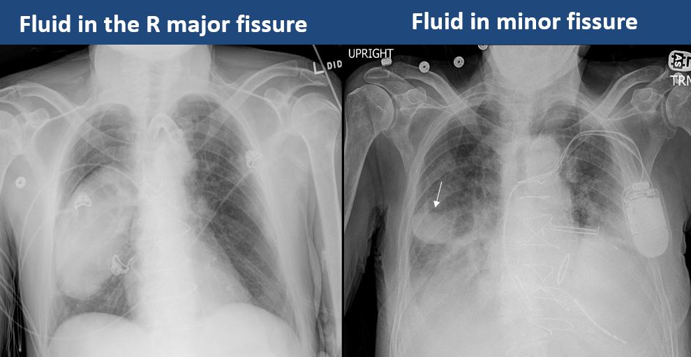 There is focal fluid in the fissures. |