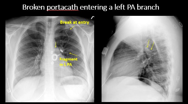 There are other devices such as a chest tube or pleural drain, feeding, NG, or gastrostomy tube, LVAD or pacemaker, vascular stents, cardiac valves, anesthesia catheter, VP shunt, neurostimulator, or other drains or tubes present that are in an abnormal position or are otherwise abnormal. |