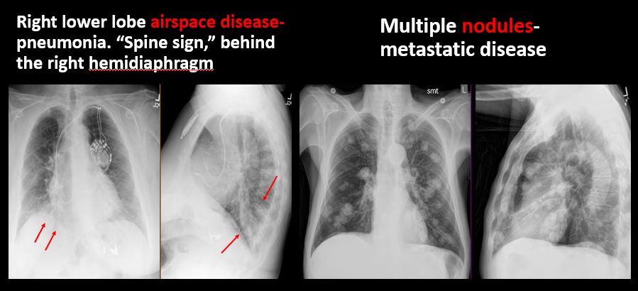 There is focal, multifocal, or diffuse airspace disease, mass, opacity, or nodularity. |