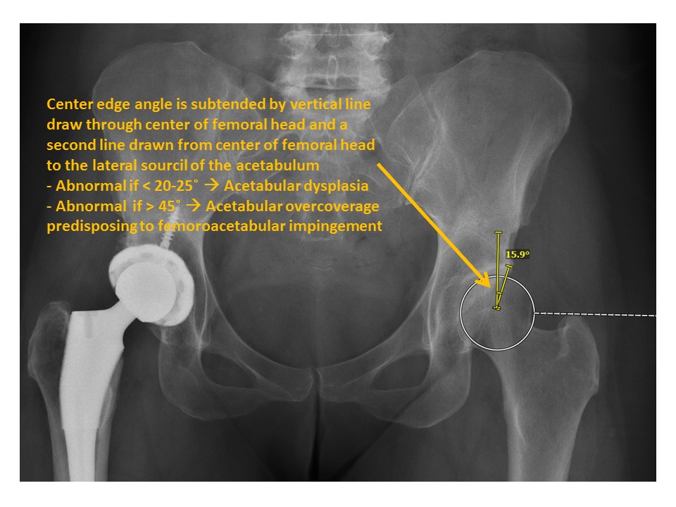 The center edge angle of the femoral heads is abnormal. [Yes/No]