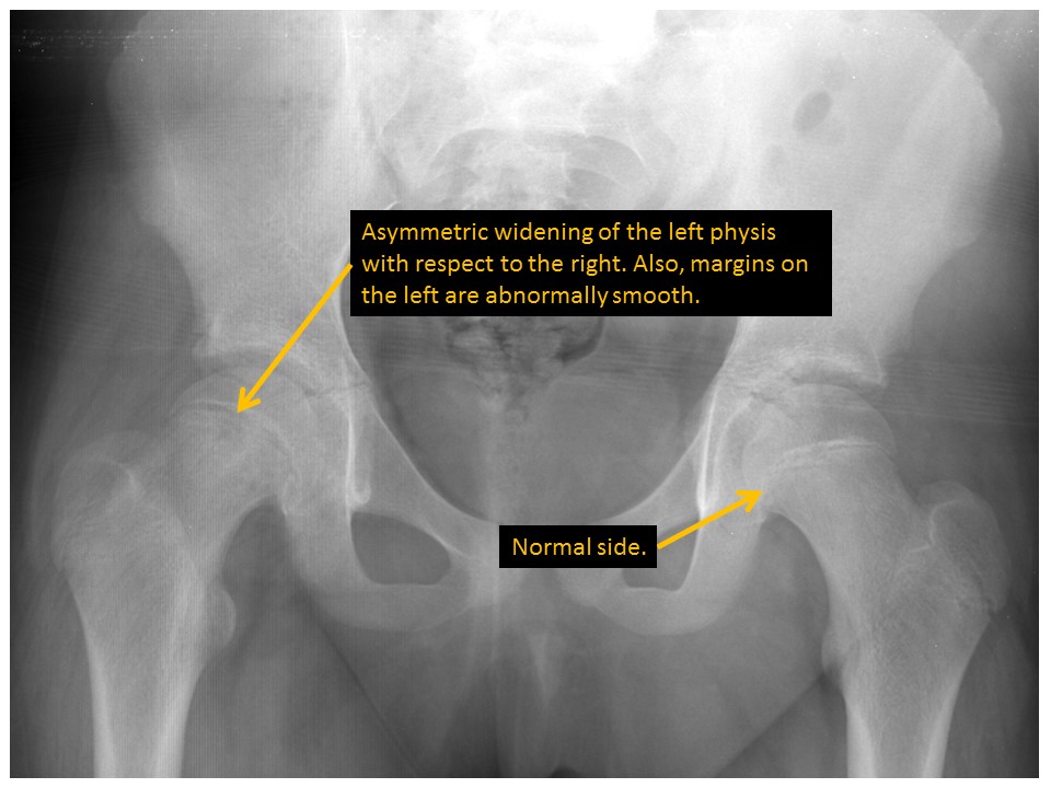The proximal femoral physes are widened or abnormally smooth or irregular in contour. [Yes/No]