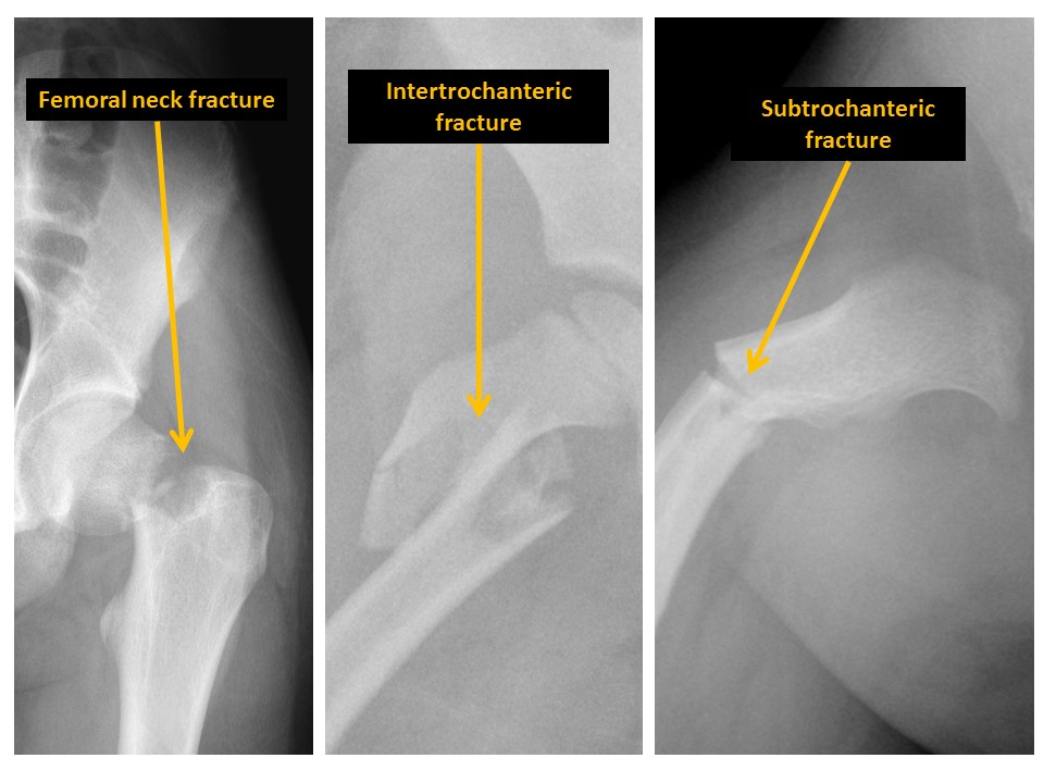 There are fractures of the femoral neck, intertrochanteric region, or subtrochanteric region. [Yes/No]