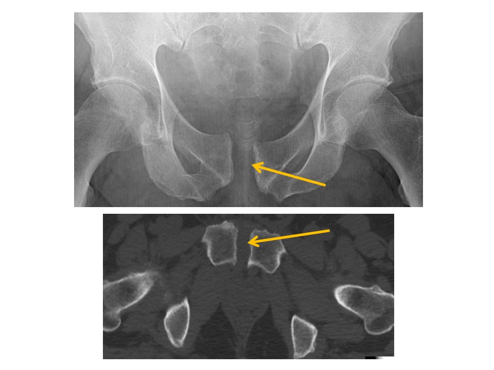 There are CT findings of pubic symphysis inflammation or degeneration. [Yes/No]