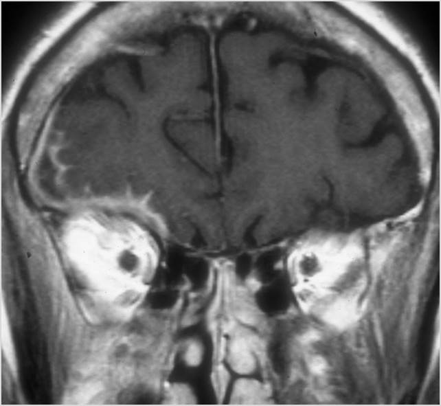 The orbital apex and the superior and inferior orbital fissures are infiltrated. [Yes/No]